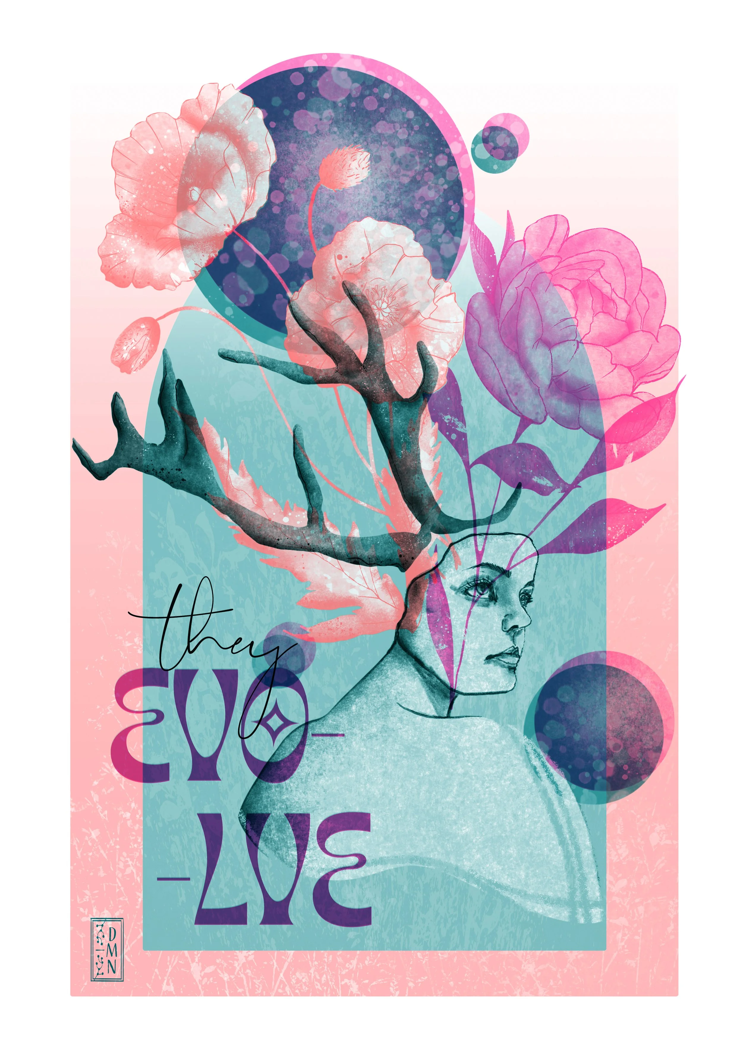 Evolve Risograph poster for XOKO + Isle of Riso Pride Exhibition 2023- printed by Isle of Riso